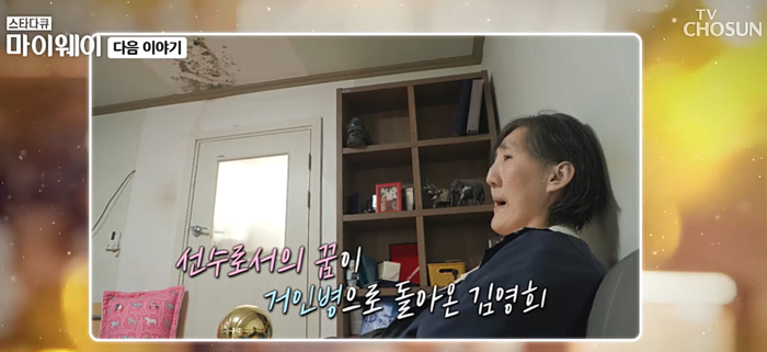 김영희는 TV조선 '마이웨이'에 출연하여 자신의 근황을 전한다고 하는데요. 스스로 일어서서 걷는 것조차 힘들어하는 그녀에게 많은 도움에 손길에 닿기를 바랍니다.