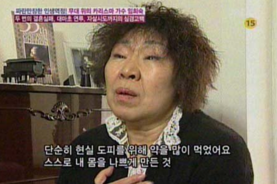 당시 임희숙은 이혼의 상처로 인해 우울증으로 음.독자.ㅅ ㅏㄹ까지 시도했으며 “단순히 현실도피를 위해 약을 많이 먹었다"며 솔직한 심경을 털어놓기도 했습니다.