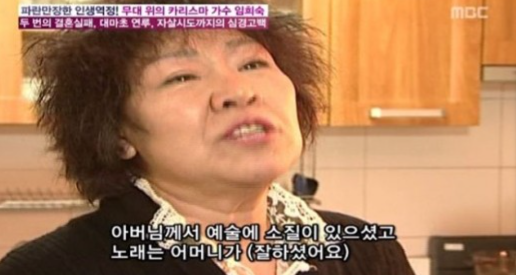 이어 가수 임재범과 친척지간인 사실을 밝히며 “임재범의 아버지 임택근이 나에게 ‘할머니’라고 부른다. 임재범에겐 내가 증조할머니 뻘인 셈”이라고 설명했습니다.