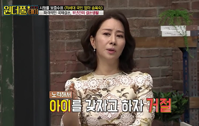 이어 송옥숙은 아이를 갖기를 원했지만 아이를 갖게 되면 이혼할 수 없게 송옥숙이 자신을 붙들려고 할까 봐 아이를 원하지 않았다고 합니다.