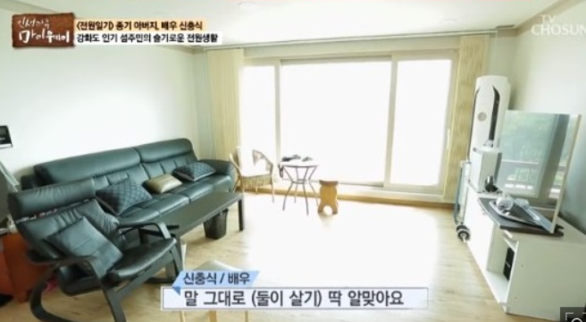 이후 인천 강화군 석모도에서 아내 변금주씨와 전원생활을 해왔다고 하는데요. 신충식의 전원주택은 대지와 텃밭은 2500㎡(760평)에 집은 85㎡(26평) 정도 넓이고, 바다가 내려다보이는 전망이 일품으로 집 구조와 냉난방 및 소음 등 모든 것을 신충식이 직접 신경 써가며 지은 집으로 알려졌습니다.