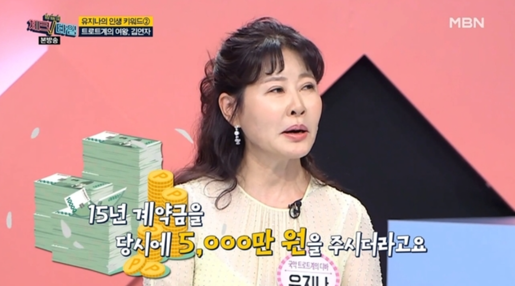 그녀는 "15년 계약 계약금으로 5000만 원을 주더라. 당시 내가 동부이촌동 아파트에 살았는데 35평 아파트 한 채가 2000만 원 할 때였다"고 설명했습니다.