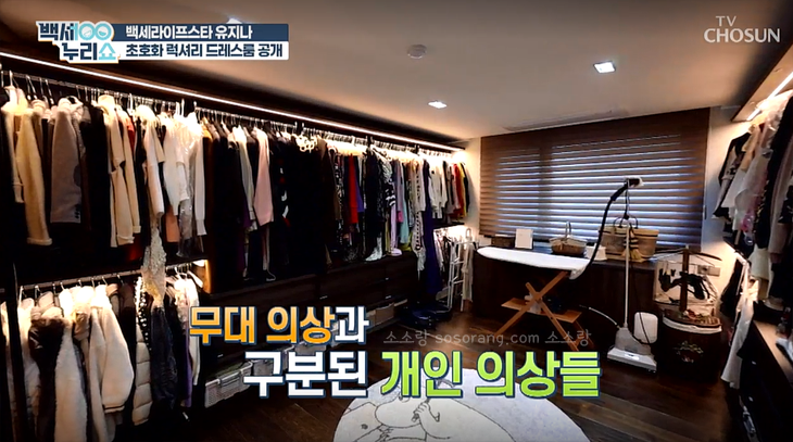 유지나는 2022년 2월 백세누리쇼를 통해 반려견과 함께 사는 2개의 드레스룸과 화려하고 깔끔한 인테리어가 돋보이는 그녀의 집이 공개되기도 했습니다.