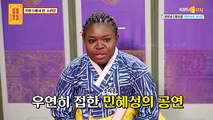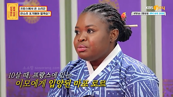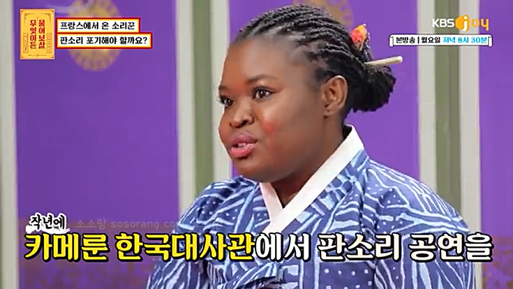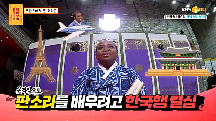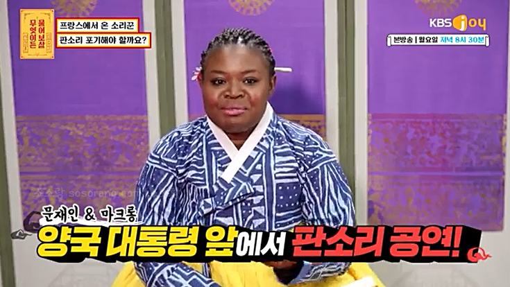 한국의 판소리에 반해 프랑스에서 한국까지 오게 된 카메룬 출신 마포로르(39)는 잘 다니던 직장까지 그만두고 2017년 서울에 와 본격적인 판소리를 공부하게 되었다고 합니다.