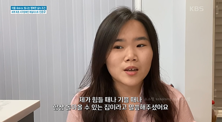 신순규 씨는 9살 때 녹내장과 망막박리로 시력을 완전히 잃고 1급 시각장애인이 됐다고 하는데요. 그 전까지 많은 수술을 거쳐오며 힘겨운 시간을 보낸 신순규 씨는 인터뷰를 통해 “실명이 되었다는 의사의 소견을 듣고 ‘더 이상 힘든 수술을 하지 않아도 되겠구나’라며 내심 안심이 되었었다”고 말했습니다.