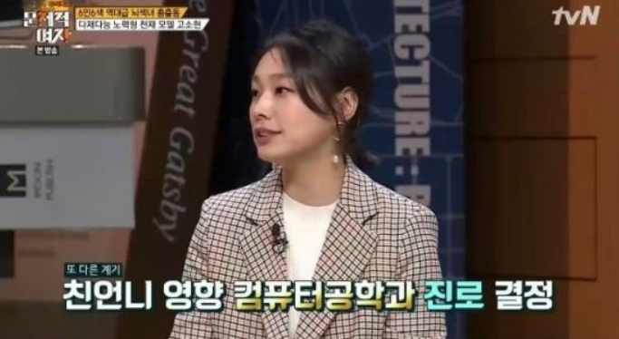이어 의대가 아닌 컴퓨터공학과에 진학한 이유에 대해서는 "어디를 갈까 하다가 휴대폰 만지는 것도 좋아해서 컴퓨터공학과가 좋을 것 같다고 생각했다. 또 친언니가 3년 일찍 이화여대 컴퓨터공학과에 진학해서 자연스럽게 생각하게 됐다"고 밝혔습니다.