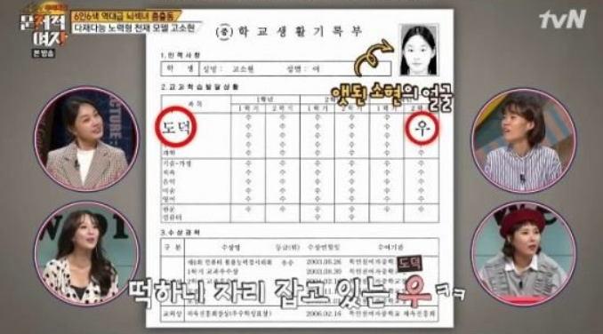 실제로 고소현은 학창 시절 전교 1등을 한 수재였다고 하며 방송에서 '우'가 딱 하나고, 모두 '수'로 가득 찬 중학교 성적표를 공개하기도 했습니다. 고소현은 “그냥 전교 1등이 너무 하고 싶었다. 밤에 졸리니까 얼음을 물고 공부를 했다"고 말했습니다.
