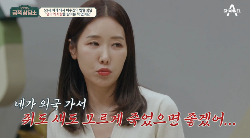 이어 "엄마가 '너는 태어나지 말았어야 할 애야. 네가 외국 가서 쥐도 새도 모르게 죽었으면 좋겠어. 한국에서 죽으면 엄마, 아빠 명예에 누가 되니까'라고 했다"라고 고백했습니다.