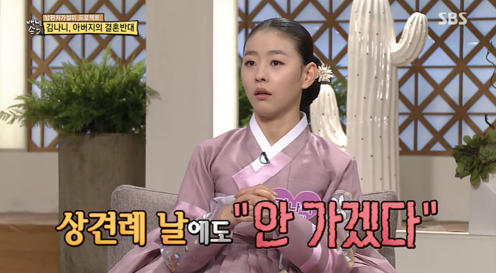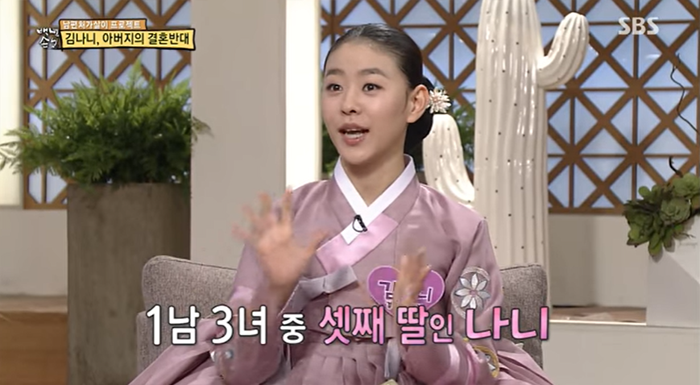 김나니는 1남 3녀 중 막내로 많은 사랑을 받고 자랐다고 하는데요. 그녀는 "아버지가 생각하기에 제가 시집가기에는 이른 나이라고 생각하신 것 같다"라며 결혼을 반대한 이유에 대해 말했습니다.