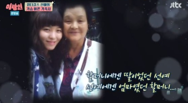 선예의 이러한 결정에는 자신의 자라온 환경이 중요한 요인 중 하나가 되었을 것 같은데요. 선예는 4살 때 어머니가 돌아가시고 강원도 속초시의 조부모 밑에서 10년을 함께 살았다고 합니다.