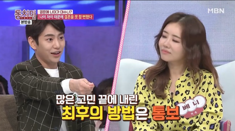 이어 베니는 “송년회가 끝날 때 결국 둘이 남았다. 안용준이 이상형, 가족 등 디테일하게 물었다. 너무 좋은 사람 같아서 친한 형을 소개시켜주겠다고 했다. 다음날 연락이 왔다”고 말하며 “무서웠다. 나이 차이를 알고 있기 때문에 혹시나 헤어지고 생각날까 봐 방어를 했다”라고 말했습니다.