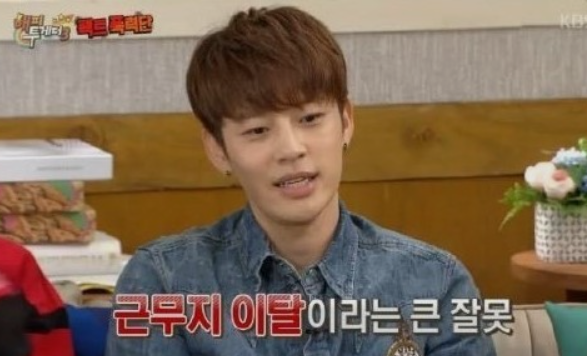 이후 군무 이탈로 인한 징계로 영창 10일의 처분을 받았으며 연예병사가 폐지되면서 경기도 포천 8사단으로 옮겨 복무 후 2014년 12월 28일로 전역하였습니다.