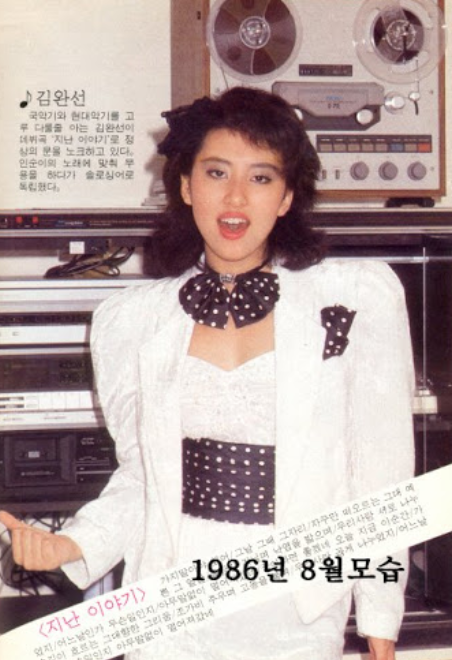80~90년대의 섹시 디바로 불리우며 많은 사랑을 받았던 가수 김완선(서울 출생, 1969년 5월 16일 55세, 164cm, 45kg)은 인순이의 매니저이자 이모인 한백희를 통해 1983년 ‘인순이와 리듬터치’의 백댄서로 연예계에 발을 들이게 되었다고 합니다.
