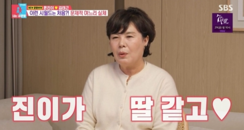 이어 윤진이는 친모녀사이 같은 시어머니를 소개하며 “엄마(시어머니)가 진짜 자주 도와주신다. 컨디션이 안 좋거나 하면 엄마한테 먼저 SOS를 친다. 저는 엄마가 자주 오시면 좋겠다”며 모녀 사이 같은 다정한 고부 사이를 보여주었는데요.