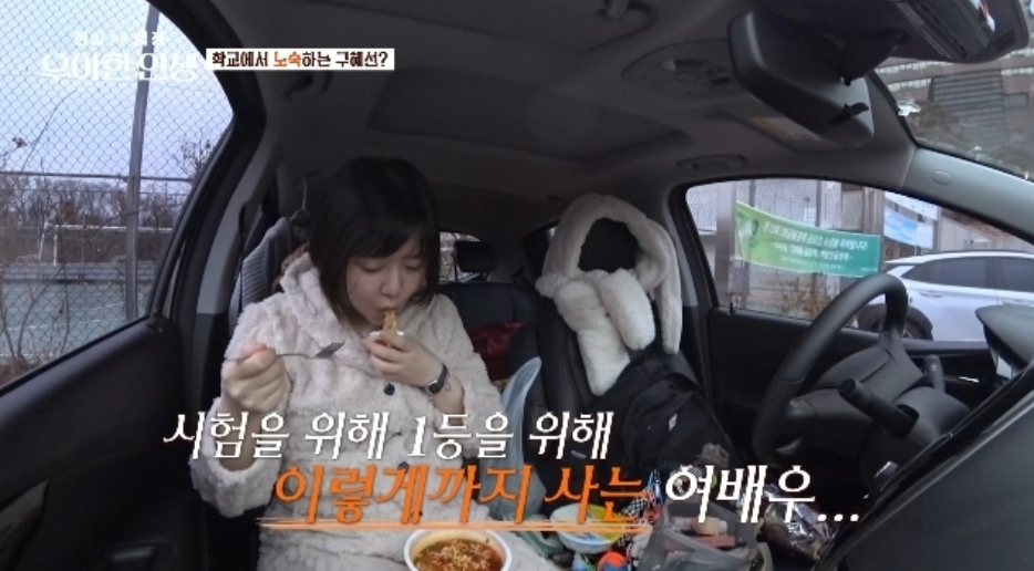 당시 그녀는 방송에 출연하여 리얼한 학교 생활을 보여주기도 했는데요. 특히 시험기간에서는 학교 주차장에서 차박을 할 정도로 공부에 열정을 다하는 모습을 보여주었습니다.