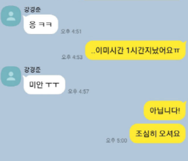 당시 강경준은 "너무 생각할 게 많더라고요"라며 장신영에게 바로 대답을 하지 못했다고 합니다. 강경준은 장신영에게 "미안하다 며칠만 기다려줘라"라고 말한 후 바로 다음날 장신영의 고백을 받아들였다고 합니다.