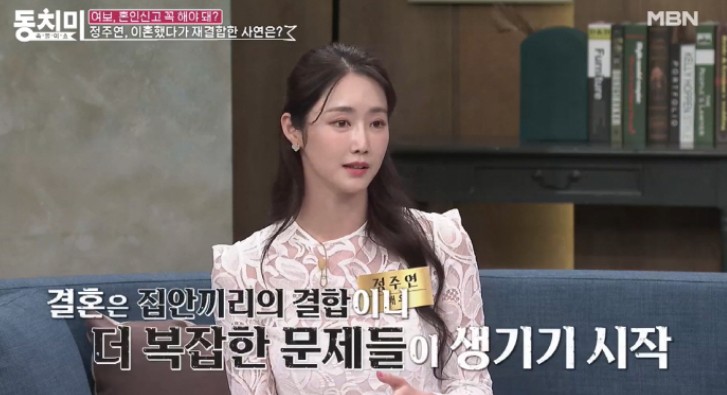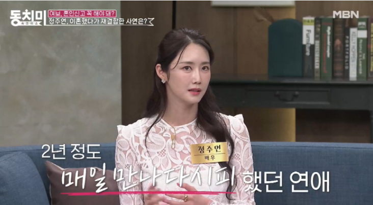 배우 정주연은 최근 방송을 통해 결혼 6개월 만에 이혼한 배경과 이후에 재결합을 한 근황을 전했는데요.