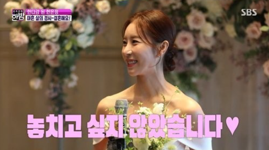 그녀는 "좋은 사람이 있을 때 좋은 인연을 맺는 게 좋을 것 같았다. 그래서 결혼을 결심하게 됐다. 순간적으로 그 사람 후광이 났는데, 놓치고 싶지 않았다"라며 결혼을 결심한 이유를 밝혔습니다.