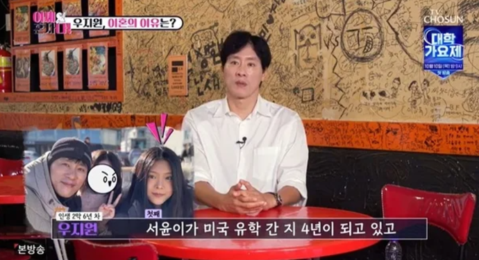 우지원의 이혼사실이 밝혀지며 과거 우지원의 딸 우서윤 양이 ‘유자신이 상팔자’에 출연하여 홀로 된 부모님의 재혼에 대해 토론하던 중 부모님의 재혼을 반대하며 그 이유로 엄마의 성격이 좋지 않고 아빠는 잘 삐치는 성격이라서 누구와도 잘 맞지 않을 것이라고 솔직하게 밝히기도 했습니다.