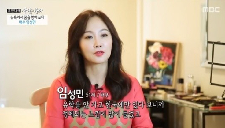 그렇게 MC로서 많은 사랑을 받던 임성민은 7년 만인 2001년 프리랜서 선언을 하고 연기와 MC를 겸업했으며 연기에 대한 열정과 헐리우드 진출이라는 목표를 위해 50세에 미국 유학을 떠나게 되는데요. 당시에 대해 “2018년에 가서 매니지먼트 에이전시 계약도 했다"며 "할리우드로 가기 위해 유학을 떠났고, 뮤지컬 ‘그린카드’에 출연하며 뉴욕 브로드웨이에 입성했다"고 밝혔습니다.