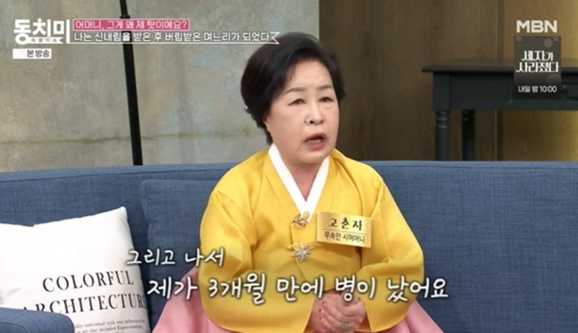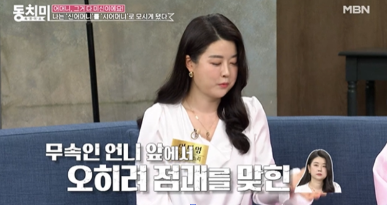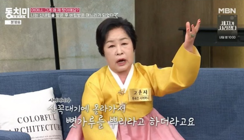 이어 “산꼭대기에서 가루를 뿌리라고 했다. 마지막 한 움큼이 저한테로 튀었다. 얼굴 전부가 하얗게 됐다. 시어머니가 집에 들어오지 말라고 하더니 호스로 옷 입은 채로 저를 씻고 3개월 만에 병이 나고 1년 만에 무당이 됐다. 무당이 되고 내가 나쁜 며느리가 됐다. 악덕 며느리가 됐다”고 말했습니다.