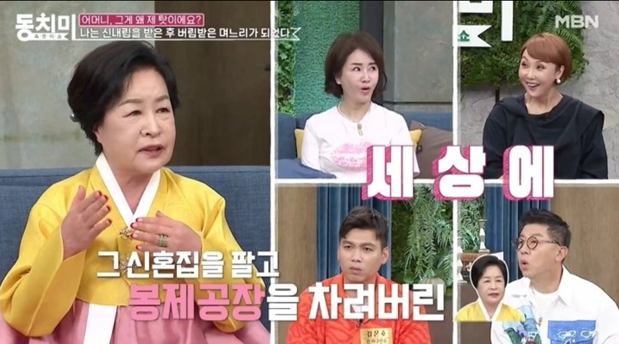 무속인 고춘자는 21살에 결혼해 22살에 친정아버지가 주택을 얻어준 신혼집을 팔고 봉제공장을 차렸지만 1년 만에 사기를 당했다고 합니다.