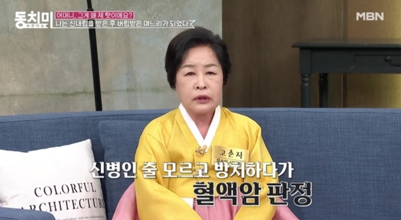 병원에 누워 있는데 한 할머니가 고춘자에게 “새댁은 여기 있을 병이 아닌 것 같다. 점을 봐야 한다'고 했다. 그길로 무당에게 물어보니 '귀신에 씌었다고 하면서 굿을 하라고 했다”면서 "신내림 받은 후에는 혈액암으로 먹던 약을 지금까지 한 번도 안 먹었다. 암 덩어리가 하나도 남김없이 다 없어졌다“고 설명했습니다.