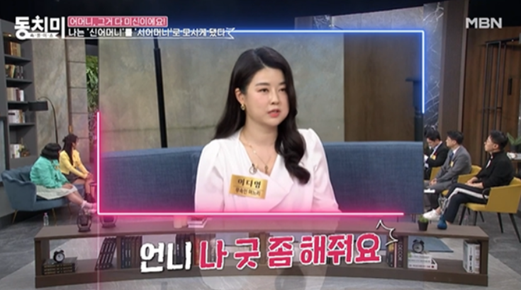 고춘자의 며느리 이다영은 “어렸을 때부터 무병이나 신병, 이런 증상은 못 느껴봤다”라며 평범한 보험회사 직원이었던 이다영은 아버지의 건강 악화와 반복되는 악몽으로 힘들어하다가 “집에서 상여가 나가는 꿈을 꾸고 검은 옷을 입은 사람들이 오고. 집안에 우환이 있는 꿈을 다 꾸는 거다”라며 점을 본 적도 없는데 이상하게 굿을 봐야 아버지가 살 것 같았다고 하는데요.