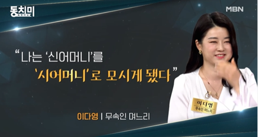 곁에서 1년동안 이다영을 지켜봤던 고춘자는 한결같이 예의 있는 이다영을 며느리로 점찍게 되면서 자신의 아들에게 “너 다영이 어떠니?”라며 카드까지 주면서 함께 극장가라고 적극적으로 호감을 표현했다고 합니다.