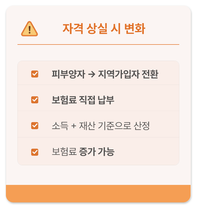 피부양자 자격이 상실되면 다음과 같은 변화가 발생합니다.