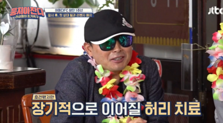 하지만 JTBC 뭉쳐야 찬다의 '어쩌다 FC' 멤버로 활동하면서 촬영 중 허리 부상으로 지난 3월에 잠정 하차했으나 이봉주의 병세는 나아지지 않고 있다고 합니다.