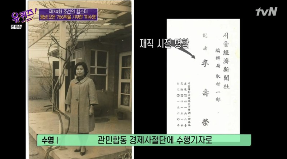 이수영 회장은 평생을 모은 돈을 카이스트에 기부하며 큰 화제를 모았으며 지난 2012년(80억여 원)과 2016년(10억여 원) 미국 부동산을 유증한 것에 이어 지난 7월 23일 카이스트에 676억 원을 기부하며 모두 세 번의 기부로 총 기부액은 카이스트 개교 이래 최고액인 766억 원이라고 합니다.