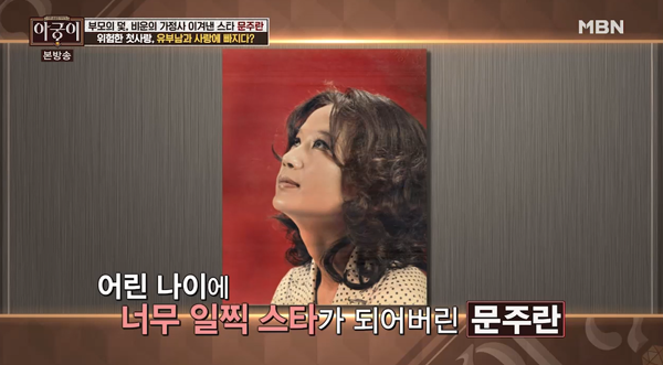 문주란의 아버지는 부산 서면에서 큰 운수사업을 해서 유복한 어린 시절을 보냈다고 하는데요. 하지만 다섯 살 때 어머니가 돌아가시며 가세가 기울었다고 합니다. 이어 세 번이나 결혼을 한 엄한 아버지와 새어머니 아래서 불우하게 자랐다고 하는데요.