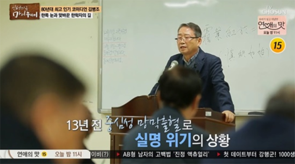 김병조는 “13년 전 중심성 망막출혈로 한쪽 눈에 실명 위기가 왔었다”라고 밝히며 당시 시신경을 제거하거나 진통제를 맞거나 선택을 했어야 했다고 하는데요. 그는 “진통제 맞고 강의를 할 수는 없어서 운명으로 받아들였다”고 밝히며 결국 왼쪽 시신경을 제거했다고 합니다.