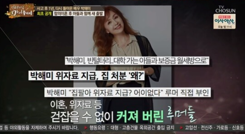 박해미는 "수입원이 한 푼도 없던 상황"이었다고 말하며 전 남편으로 인해 “1년간 죄인 아닌 죄인으로서 자숙했다"고 털어놓았는데요. 힘든 시간들을 뒤로하고 연기 활동과 무대로 돌아와 열심히 활동 중인 배우 박해미의 열정을 응원합니다.
