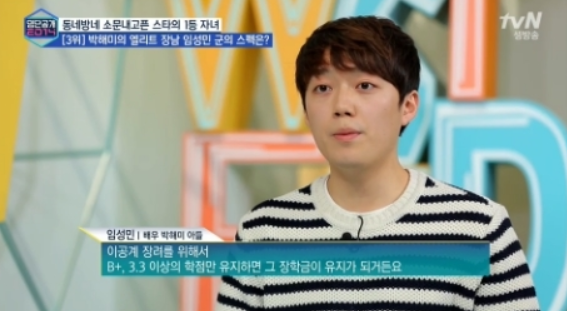 박해미는 2남의 자녀를 두고 있으며 큰 아들 임성민은 1988년 생으로 첫 번째 남편의 소생이며 2010년도 수능에서는 상위 0.5% 성적을 기록하면서 성적 우수 장학금을 받고 서울대학교 공과대학 에너지자원공학과에 입학해 화제가 되기도 했으며 졸업 후 카투사로 군복무를 바쳤으며 현재 대학원에 재학중이라고 합니다.