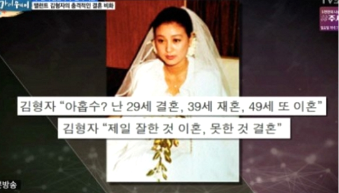 김형자는 방송에 나와 "29살에 결혼하고, 39살에 재혼을 했다. 그리고 49살에 이혼을 했다"며 자신의 결혼과 이혼에 대해 털어놓기도 했는데요.