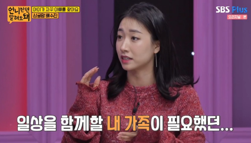 배수진은 형제 중 둘째로 아버지인 배동성과 자랐다고 하는데요. 그녀는 "오빠와 여동생이 있는데 저만 아버지 쪽에서 자랐다"며 "아빠가 지방 스케줄이 많다 보니 당시 오직 아빠한테만 의존했었고 그렇게 외롭다 보니 결혼을 빨리 했다"고 설명했습니다.