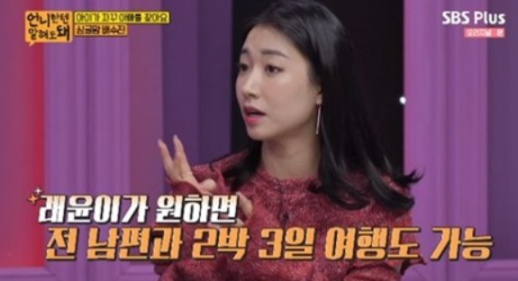 싱글맘으로서 홀로 24시간 육아에 전념해야 하는 그녀는 사랑하는 아들과 함께있어 행복하지만 몸과 마음이 힘들다고 하는데요. 이어 이혼 전에는 전 남편이 아이를 예뻐하며 잘 놀아줬다고 하며 한 달에 한 번에서 최근에는 아빠와 아들이 자주 만나고 있다고 합니다.