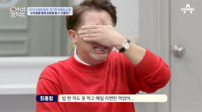 최홍림은 "우리 집에 가전제품이 하나도 없었다. 형이 다 전당포에 팔아먹고 전당포 딱지를 땅바닥에 놓고 갔다. 우리는 형이 또 와서 다 맡길까 봐 하나씩 가전 들고 남의 집에 맡기고 피해있었다"며 "형이 집을 팔고 누나 돈까지 다 썼을 때, 형이 날 죽인다고 했지 주먹으로 팼지. 눈 하나 깜빡 안 하면서 물건 다 집어던졌지. 나 대학 2학년 때다. 그때 무슨 10살 많은 형이 사춘기냐"라고 오열했습니다.