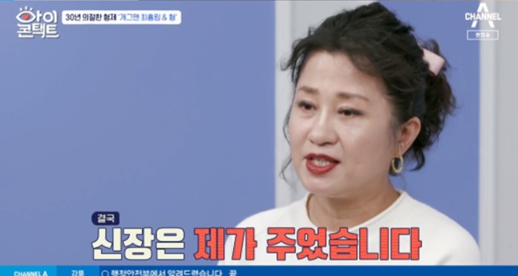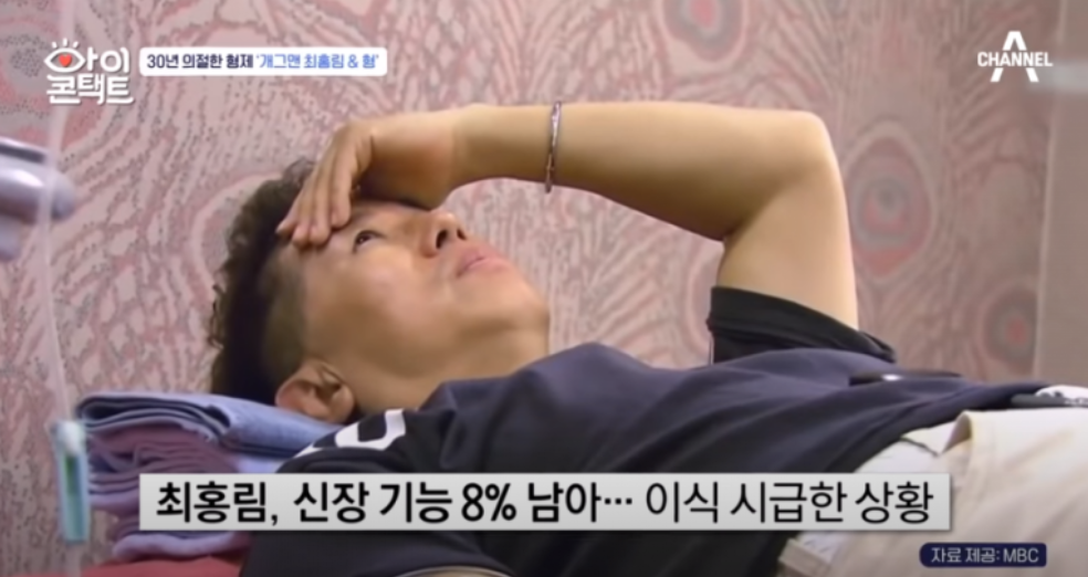 그렇게 30년 동안 의절했으나 2018년 최홍림은 말기 신부전증을 앓고 신장이식만이 치료방법이었다고 하는데요. 그 때 형한테 연락이 와 자신의 신장을 이식해 주기로 약속해 놓고 잠적하는 바람에 최홍림의 누나의 신장을 받게 되었다고 합니다. 이어 최영미 씨는 수술비 때문에 조기 퇴원했다고 합니다.