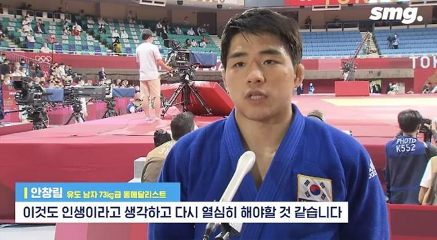 당시 안창림은 시상대에서 고개를 숙인 채 눈물을 쏟았으며 인터뷰에서도 "시합 끝나고는 괜찮았는데 메달 받으니까 진짜 결과를 받아들여야 될 것 같아서..."라며 아쉬워했습니다.