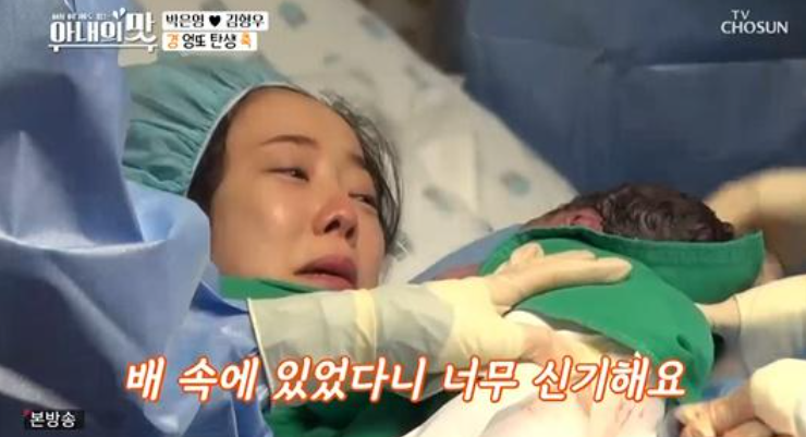 이어 박은영은 출산 당시 출산 예정일을 2일 앞두고 긴급 분만에 들어가 극심한 고통에 괴로워하며 자연분만까지 포기하려 했지만 다행히 무통주사와 엄마인 박은영의 굳은 의지로 진통 20시간 만에 자연분만으로 무사히 출산할 수 있었다고 합니다.