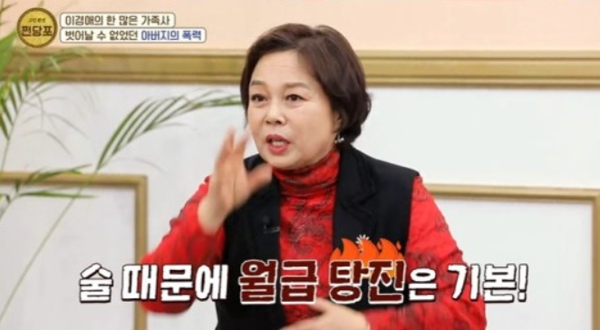 이경애는 방송에 나와 자신의 어려웠던 어린 시절에 대해 털어놓기도 했는데요. 그녀는 “아버지가 술을 너무 좋아해 술 먹고 월급을 다 날렸다. 월급날이면 외상값 갚느라 한 달 월급이 없었다.”라며 “엄마는 이렇게 살다가 애들이 굶어 죽을까 봐 아버지 몰래 행상을 나가기도 했다”라고 털어놓기도 했습니다.