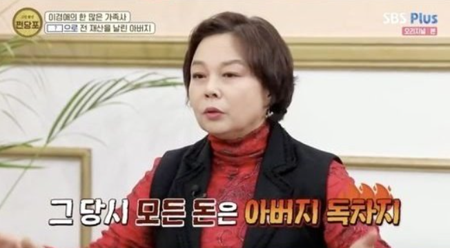 당시 그녀의 매니져였던 아버지는 이경애의 수입을 모두 챙겨갔다고 하며 그 돈을 주식에 투자해 은행이 망해서 모두 잃게 되었다고 합니다.