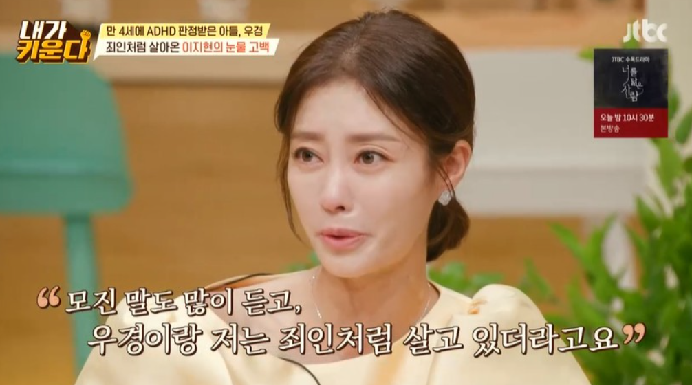 방송에서 이지현은 "우경이는 4살 때 처음 ADHD 확진을 받았다"며 "우경이는 화가 나면 확 폭발하고 참지 못한다"며 “사람 일은 한 치 앞을 모른다고 롤러코스터도 타고 내리막길도 걷고 힘든 시간들을 겪었다”고 털어놨습니다.
